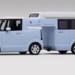 En esta transformación el N-Box ha perdido las plazas traseras, así que tenemos un conjunto coche-caravana biplaza. Gancho de remolque convencional pero la caravana monta sobre el coche para lograr mayor especio interior. Recuerda a las autocaravanas capuchinas. Tiene comedor, armaritos, techo elevable, cama para dos personas, toldo...