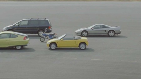 Os traemos un anuncio de Honda que tal vez nunca veamos en España, porque es para la televisión japonesa. En un solo barrido de cámara, pasaremos desde las primeras bicicletas hasta el nuevo Honda NSX, en fase prototipo, el futuro inmediato de Honda. Es el séptimo fabricante mundial.