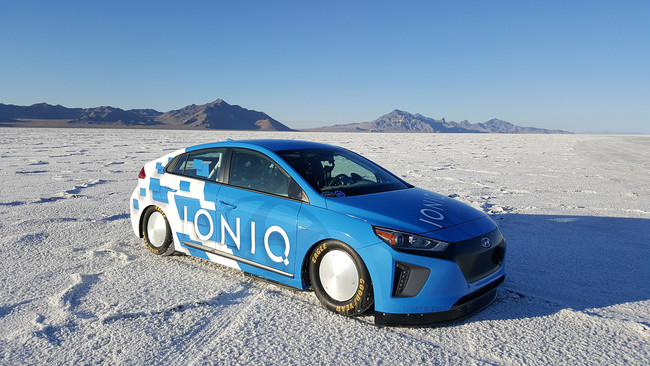 El desierto de sal de Bonneville ha vuelto a ser protagonista junto a un vehículo muy especial, en esta ocasión se trata de un coche híbrido, el Hyundai Ioniq. Y es que ahora el Ioniq ostenta el récord de velocidad sobre tierra en un vehículo híbrido aprobado por la FIA.