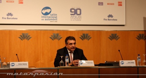 Salón de Barcelona, viernes 8 a las 13:00. Hay una conferencia programada de Ivan Hodac, presidente de la ACEA (European Automobile Manufacturers’ Association). Sin embargo nos anuncian que el presidente de Anfac (Asociación Española de Fabricantes de Automóviles y Camiones) dará una breve rueda de prensa, ya que la asociación ha terminado su reunión y parece que tienen algo que anunciar.