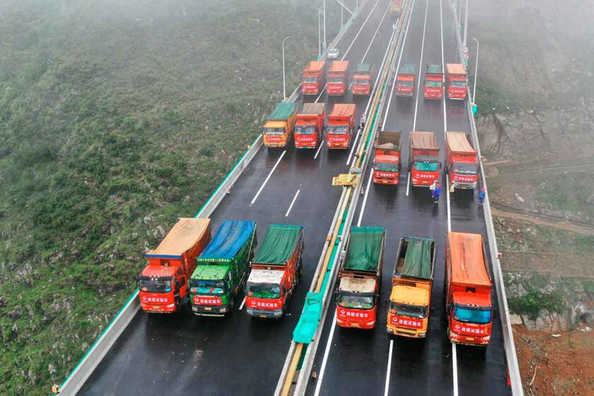 Estas pruebas de carga se han realizado para evaluar aspectos como su resistencia estructural, la rigidez o el rendimiento dinámico según recoge China Daily. Los test fueron tanto estáticos como dinámicos con vehículos reales, para lo que escogieron los de mayor peso de la carretera: camiones cargados y firmando un total de 35 toneladas cada uno.