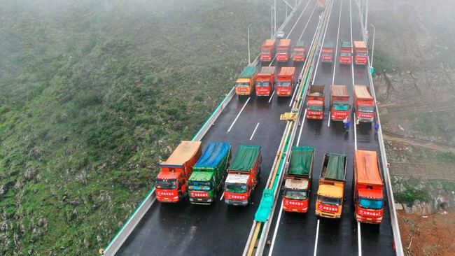 El Puente del Gran Cañón de Huajiang acaba de completar un ensayo crucial para demostrar que está listo para que miles de vehículos circulen por sus casi 3 kilómetros de extensión. Se trata de la prueba de carga, para la que se han utilizado casi 100 camiones, simulando el peor de los atascos.