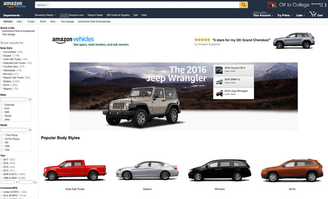 Por ahora, Amazon Vehicles es una nueva página en la que procrastinar mirando las especificaciones y opiniones de usuarios sobre de toda clase de coches que se vendieron en Estados Unidos, incluso de algunos que ni sabías que existían.