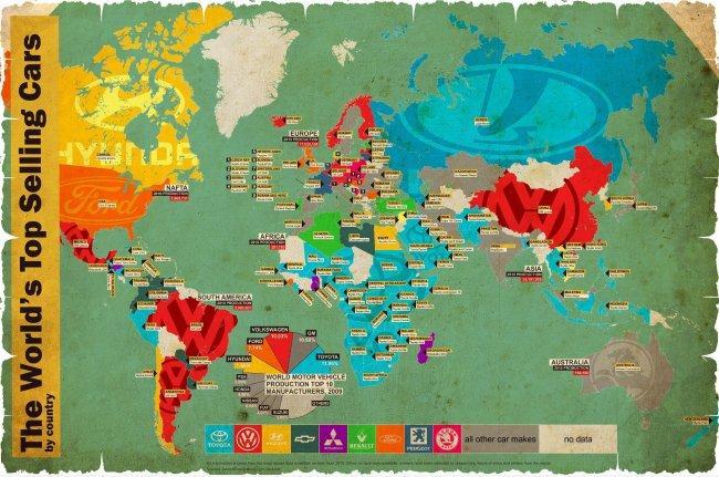 Hace ya un par de meses, nuestro lector Alfonso Beltrán nos hacía llegar una curiosa infografía que representaba un mapamundi con los coches más vendidos en cada uno de los países y en cada continente, con análisis de los ratios de producción y unos cuantos datos cuanto menos curiosos.