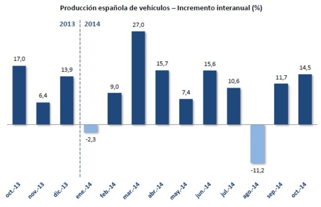 Si se sigue a este ritmo el año 2014 podría cerrar con más de 2,4 millones de unidades fabricadas. Que en España hayan subido las ventas durante los últimos 14 meses también ha ayudado, aunque habrá que ver, con cierta ralentización de la economía europea, si se puede mantener el ritmo en los próximos meses.