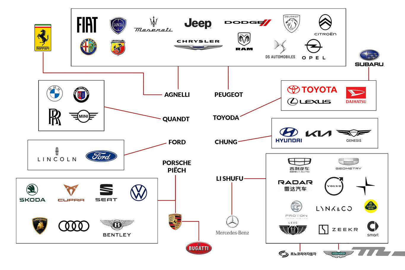 Un siglo más tarde de la invención del automóvil, un puñado de personas controlan más de la mitad de la producción mundial. Y, ojo, aquí hablamos sólo de la fabricación de coches. No incluimos otras ramas del negocio, como pueden los camiones, la maquinaria pesada y agrícola, las motos, la financiación (casi todos tienen su propia financiera) o el reacondicionamiento y la venta de coches de segunda mano, sector en el que Stellantis es líder en Europa, con marcas como Aramis o Clicars.