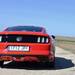Una placa de fondo rojo con tres grupos de caracteres en negro. Empieza con una letra, le sigue un grupo de cuatro cifras y termina con tres letras.