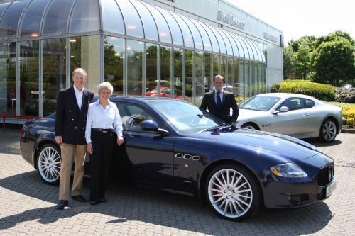 Este hombre que aparece en la foto es el afortunado comprador de el Maserati Quattroporte número 1000 en Gran Bretaña, pero no penséis que se trata de un hombre cualquiera. Su nombre es John Burton, y en los años 70 corría en carreras de prototipos con un Chevron B26.