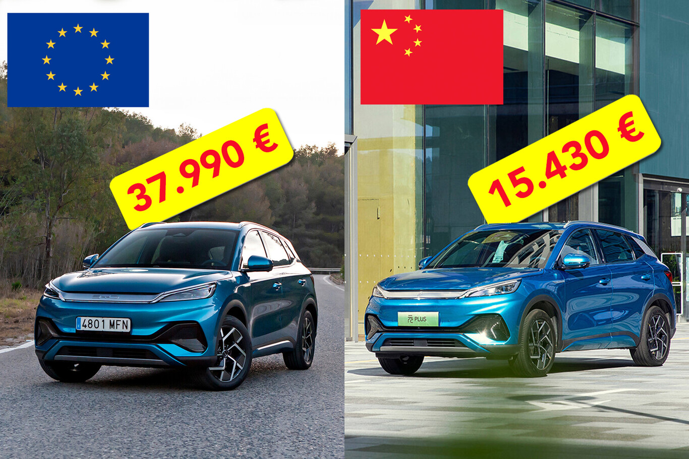 Por ejemplo, el BYD Atto 3, un crossover eléctrico compacto y su modelo que más éxito tiene fuera de su país natal, cuesta desde 37.990 euros en España y Alemania (precio tarifa). En China, cuesta desde 15.430 euros. Los aranceles de 10% a los coches chinos y el transporte no justifican un precio que, antes del IVA europeo, duplica el precio de venta chino.