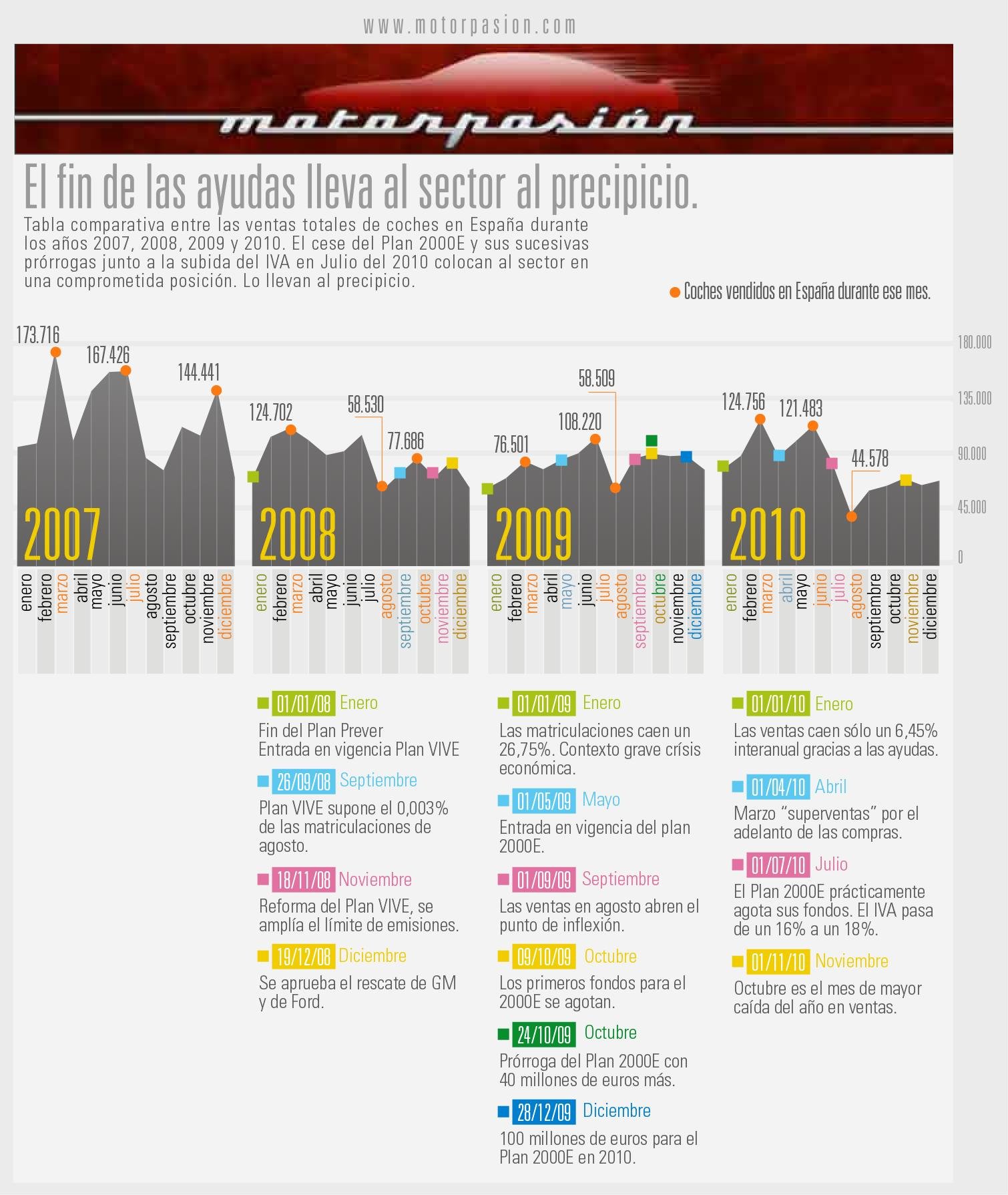 En la infografía ampliada (click en la imagen para ampliarla) podemos ver punto por punto los hitos de estos años: fin del Plan Prever, Plan VIVE, Plan 2000E y los principales picos y caídas.