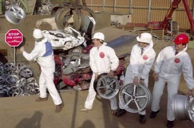 El controvertido problema de las copias parece afectar también al mundo del automóvil. El preparador alemán AC Schnitzer quiere acabar con las copias de sus llantas que vienen principalmente de Asia, y por ello ha montado este show de aniquilación de llantas piratas.