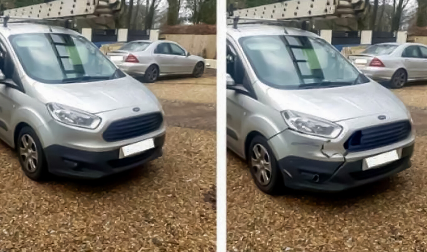 LV recibió imágenes de la furgoneta que parecían mostrar que el parachoques delantero se había roto en el supuesto accidente. Las fotos iban acompañadas de una factura de reparación falsa por más de 1.000 libras.