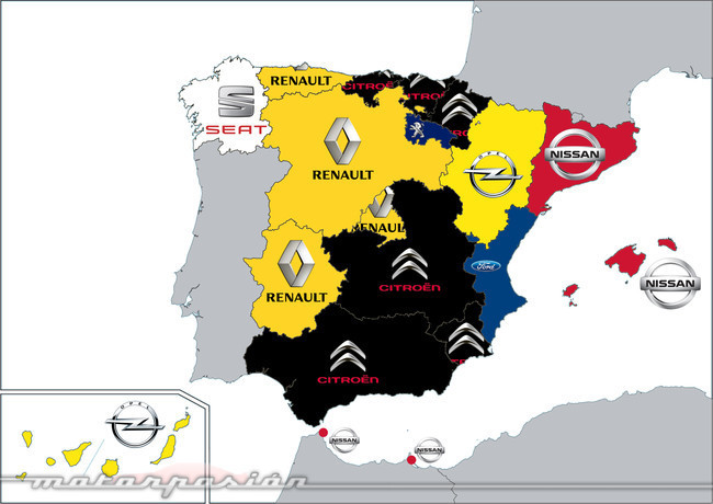 General Motors se queda con Aragón y las Islas Canarias. A los maños les va más el "Opel Astra":https://www.motorpasion.com/opel/opel-astra-2012, mientras que los canarios prefieren el "Opel Corsa":https://www.motorpasion.com/opel/opel-corsa-2011. En el Mediterráneo hay fuerte presencia japonesa, el "Nissan Qashqai":https://www.motorpasion.com/nissan/nissan-qashqai-2012-con-motor-16-dci-de-130-cv-y-vision-360 lideró en Cataluña, las Islas Baleares y las ciudades autónomas en África. Valencia, a su bola, es claramente fordiana, el más vendido fue el "Ford Fiesta":https://www.motorpasion.com/ford/nuevo-ford-fiesta-2013-restyling-de-generacion.