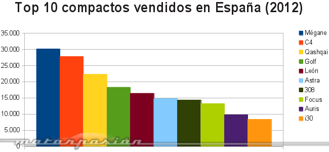 Datos en mano, el SEAT León es el compacto 5p más vendido de España, solo se ha ofrecido en esa variante durante 2012. ¿Consideramos al Qashqai como compacto? Esto da pie a una interesante discusión, porque Nissan lo vende como una mezcla de berlina, compacto, monovolumen y todocamino. _Qashcaos_ esa.