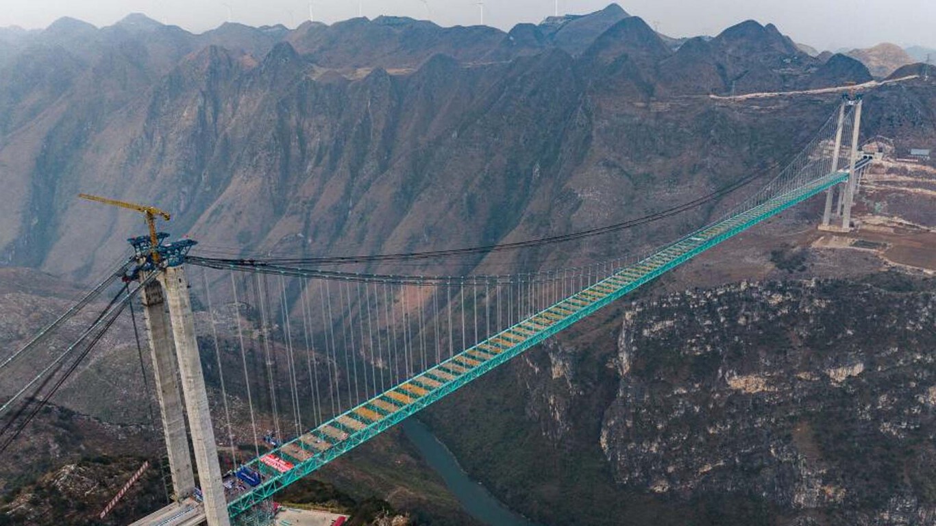 Se trata de un puente colgante situado en la provincia de Guizhou, con una altura de 625 metros sobre el río Beipan y una longitud de 2,89 km. Comenzó a construirse en 2021 y su inauguración está prevista para junio de este año, por lo que en ese momento le arrebatará el récord al actual puente más alto del mundo, el puente Duge, también ubicado en China.