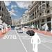 La propuesta que plantea el Ayuntamiento de Madrid, y que parece que finalmente se hará efectiva, convertirá la Gran Vía en un lugar mejor para los viandantes y los ciclistas, y más complicado para los vehículos privados. En el tramo de la Gran Vía entre la plaza de Cibeles y la de Callao, la bicicleta convivirá con el resto de los vehículos en los ciclocarriles 30, quedando la calzada dividida en cuatro carriles.