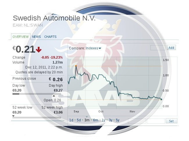 La empresa matriz de Saab, Swedish Automobile, ha sido suspendida de cotización en la bolsa holandesa. Esto significa que las acciones no se pueden ni vender ni comprar. La cotización estaba ya por los suelos, a 0,21 euros por cada acción. ¿Qué ha pasado?