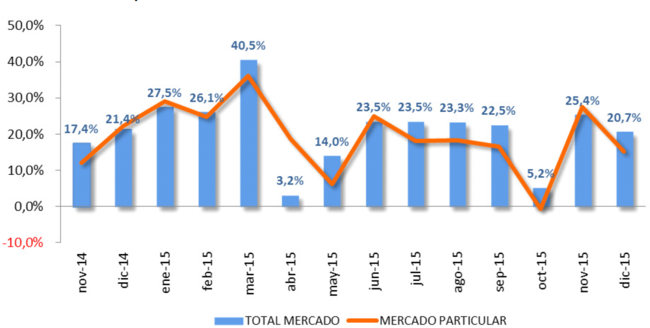 | Canal | Unidades diciembre | Variación | Unidades 2015 | Variación |