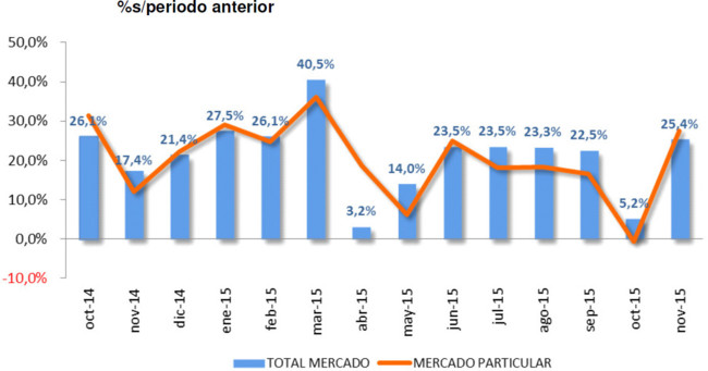 | Canal | Unidades noviembre | Variación | Unidades 2015 | Variación |