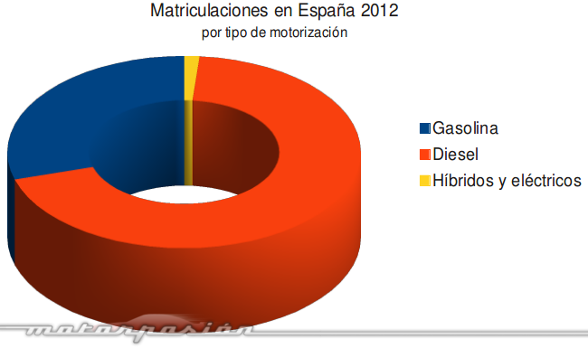 Después del avance de matriculaciones de España en 2012, hoy vamos a meternos con más profundidad en las ventas de híbridos y eléctricos. De momento todos estos coches tienen una cuota del 1,4% del mercado, frente a un 68,9% de Diesel y 29,6% de gasolina. Es una cuota baja, pero ha subido.