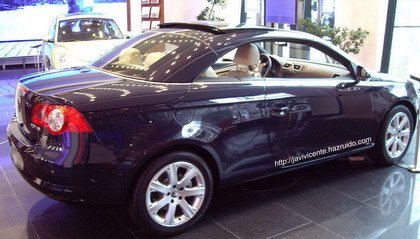 Las fotos que véis son del Volkswagen Eos, el nuevo cabrio de Volkswagen que ya se puede ver (y tocar) en aquel país, de hecho las fotografías son suyas, incluso nos muestra los precios de catálogo del mercado alemán, que comienzan en 25.950 euros para el FSI de 115 cv (el 1.6, si no me equivoco).