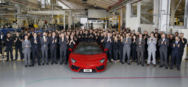 El Lamborghini Aventador se convierte así en el modelo de 12 cilindros más vendido de la historia de la marca. El anterior V12 en tener tanto éxito fue el Murciélago, del cual se fabricaron casi 4.100 unidades a lo largo de su vida comercial. El chasis número 5000 del Aventador es un cupé de color Rosso Bia vendido en Italia.