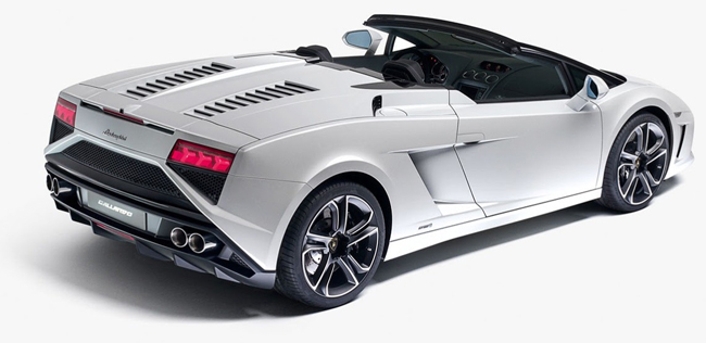 Siguiendo la misma línea que la variante coupé, el Gallardo Spyder recibe los mismos cambios estéticos para refrescar su imagen de cara al próximo año 2013. Básicamente, luce formas más angulosas y “cortantes” así como mayores entradas de aire, un nuevo difusor trasero y las llamativas llantas de 19 pulgadas, también de nuevo diseño. Además, se ofrecerá el denominado Style Package, que añade elementos exteriores en negro brillante.