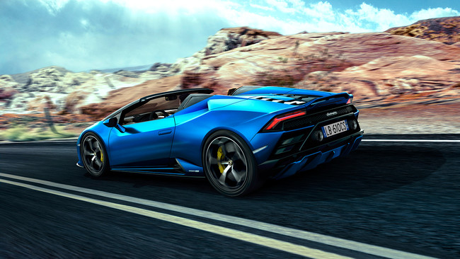 En lo que se refiere a prestaciones, son muy parejas a las del coupé: acelera desde parado hasta los 100 km/h en 3,5 segundos (0,2 décimas más tarde que el Huracán EVO RWD) y su velocidad máxima se fija en 324 km/h, respecto a los 325 km/h de la opción con techo.