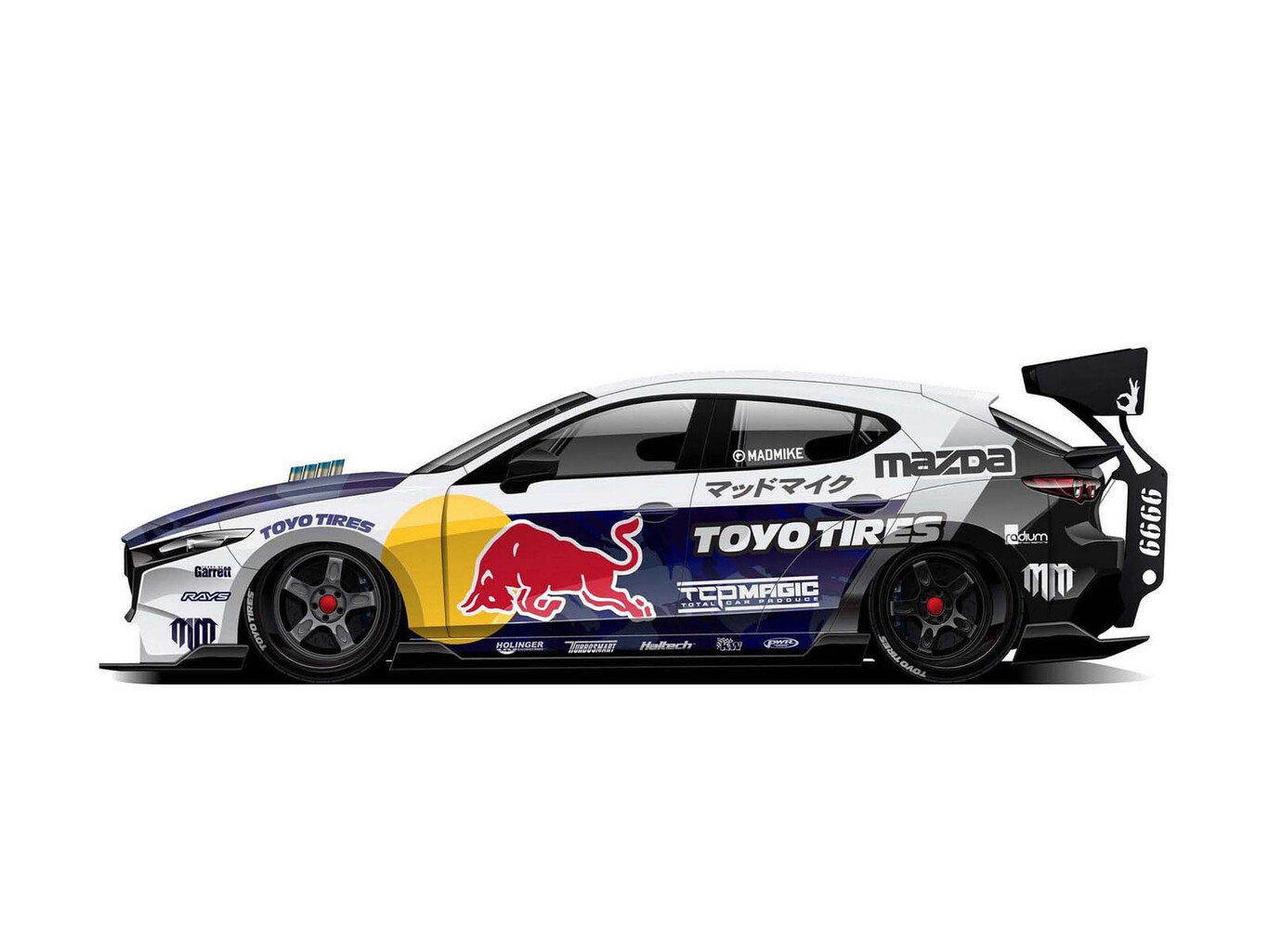 Mad Mike anunció su participación en Instagram, donde reveló la librea del Mazda (Mike sigue contando con la famosa bebida energética austriaca como principal patrocinador) y la potencia que confía en disponer con el motor rotativo: 1.200 CV. Y además, será tracción trasera.