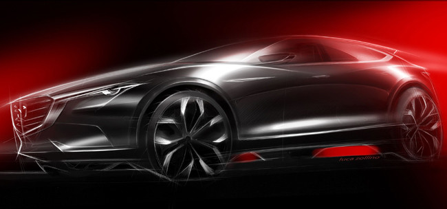El boceto a modo de teaser que ofrece Mazda de momento del Koeru, que en japonés significa literalmente "superarse", muestra la última evolución del diseño KODO de la marca. Según sus diseñadores, "expresa la potencia y la vitalidad de un depredador en combinación con un nivel único de refinamiento".