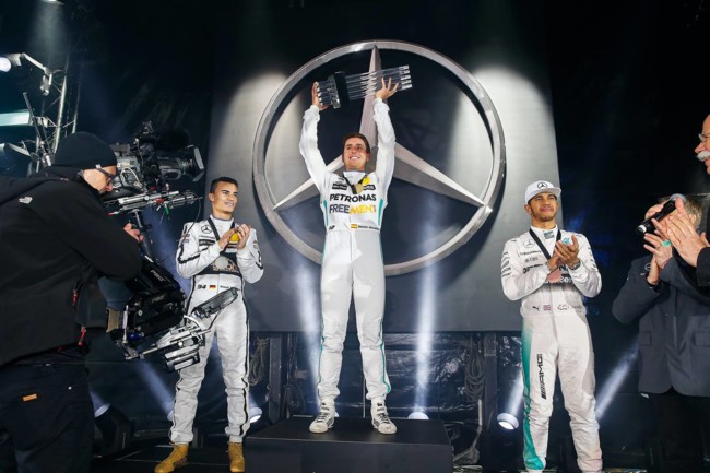 Allí reunieron a 16 pilotos, incluyendo a sus estrellas de la Fórmula 1 Lewis Hamilton y Nico Rosberg, los ocho pilotos de Mercedes-AMG en el DTM y otros pilotos de renombre como Mika Häkkinen, David Coulthard o Bernd Schneider entre otros. ¿Quién ganó? Pues el español, claro.