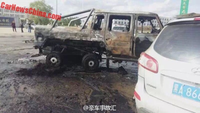 Pues esto es precisamente lo que le ha pasado a alguien en China, donde uno de estos mastodontes del campo y la carretera, preparado además por Mansory y, por tanto, con más dinero invertido en él, ha terminado su vida de la peor forma posible: reducido a cenizas. ¿Cómo? Pues todo ocurrió tras una leve colisión con un todocamino Hyundai que se convirtió en el infierno para este 6x6.