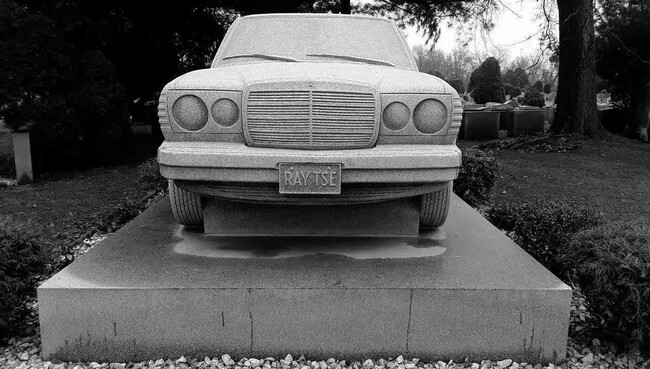 Sin embargo, su hermano mayor quiso cumplir su promesa y encargó a los artesanos de la cantera ‘Rock of Ages’ de Barre (Vermont, EEUU) un monumento funerario a imagen y semejanza de una limusina Mercedes-Benz 2400 D de 1982 a tamaño natural. El modelo preferido de Ray.
