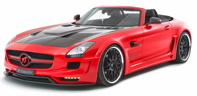 La preparación que hoy nos ocupa es el Hamann Hawk Roadster, o lo que es lo mismo, la interpretación propia de Hamann del Mercedes-Benz SLS AMG Roadster (el alas de gaviota sin alas). El resultado se ha presentado en el Salón de Ginebra con mucho color, muchos detalles en negro y mucha fibra de carbono.