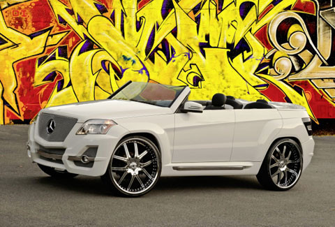 Los resultados son de lo más variopinto, como esta peculiar visión de Boulevard Customs, a la que han llamado GLK Urban Whip. Lo más destacable es su conversión a descapotable y la reducción del parabrisas delantero a modo de Top Chop.