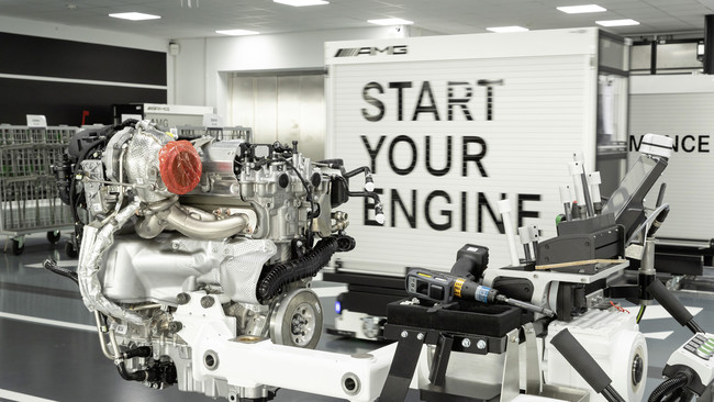 Con una cilindrada de 1.991 centímetros cúbicos, este bloque M 139 de nuevo desarrollo se ensambla a mano en Affalterbach siguiendo la misma filosofía "Un hombre, un motor" de los motores V8 y V12 de AMG. Anuncia una potencia específica de 211 CV por litro, es capaz de subir hasta 7.200 rpm y tiene una relación de compresión de 9.0:1.