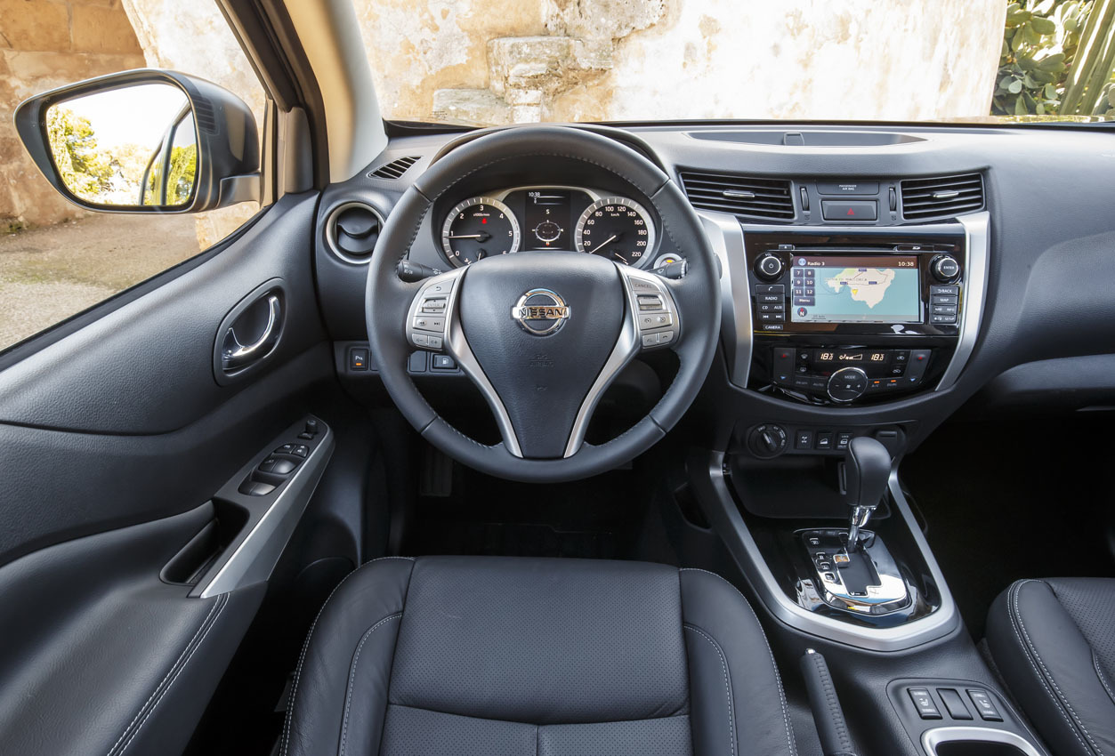 En el habitáculo el Clase X propone muchas más posibilidades de personalización y un aspecto diferente. Salvo los mandos de la tracción total (en la parte baja de la consola), todo es Mercedes-Benz (ver foto del Navara): diseño del salpicadero, mandos de la columna de dirección, volante, cuadro de mandos, panel táctil, difusores de aire, pantalla mutimedia, botones de los elevalunas, etc... Según el acabado podemos encontrar molduras de metal o madera, algo poco habitual en este segmento de automóviles.