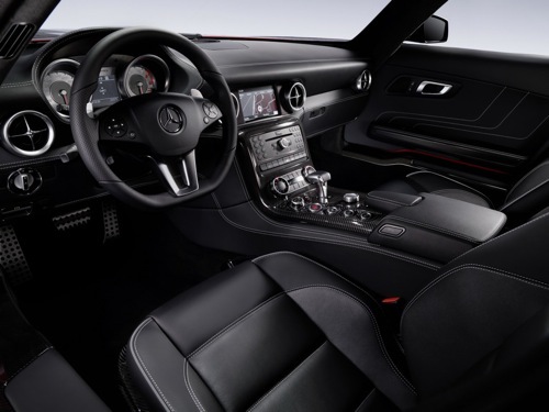La utilización de materiales como cuero y fibra de carbono en todo el salpicadero nos da una ideal de nivel de detalle que tendrá el Mercedes SLS AMG Gullwing, que saldrá a la venta en 2010.