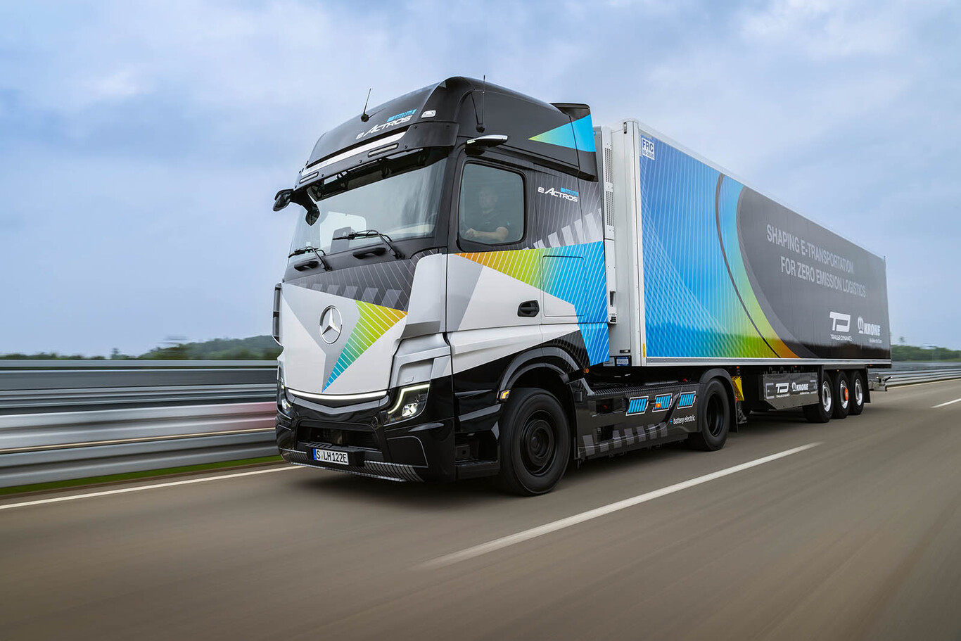 Dependiendo de la capacidad de la batería del eTrailer, la versión de producción en serie del eActros LongHaul puede recorrer más de 800 kilómetros con una sola carga de batería, según la marca.