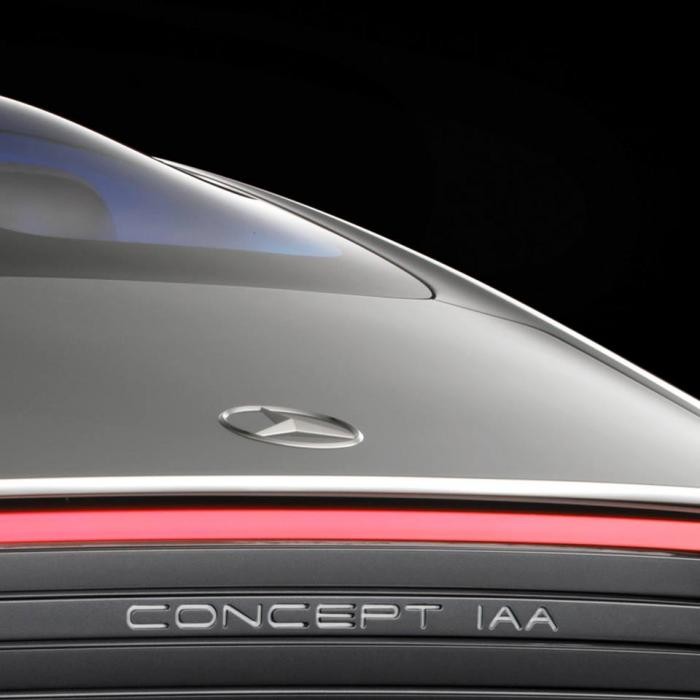 Parece la parte posterior de un nuevo concept car, que luce el logotipo de la estrella en la tapa del maletero y las letras Concept IAA bajo lo que parece ser una luz de freno posterior.