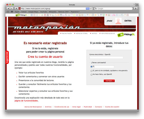 Identifícate en Motorpasión con los datos de la cuenta que desees utilizar como principal y única para el resto de publicaciones de Weblogs SL, sea tradicional con e-mail y contraseña u OpenID, y pulsa el botón Entrar.
