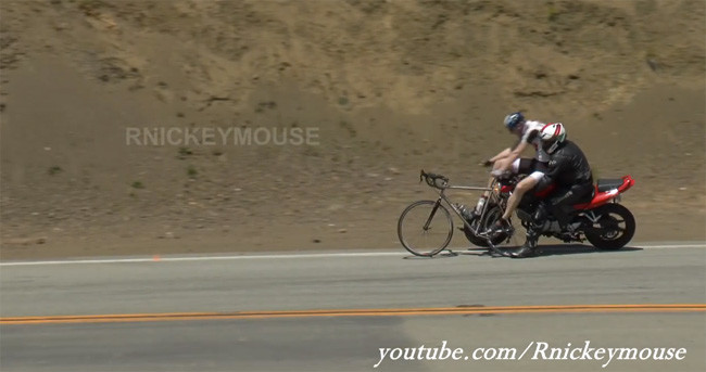 Creo que las imágenes son lo suficientemente descriptivas como para tener que añadir algo más. Es impresionante ver a cámara lenta cómo el ciclista es embestido por el motorista, cómo su cuerpo cae hacia atrás por el impacto y cómo después arrolla también a su compañeros. El primer ciclista es el peor parado, aunque por suerte las lesiones no parecen graves.