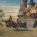 El gigantesco hipódromo de arena del Circo Máximo de Roma, de más de DC metros de largo y CXX metros de ancho, es el escenario más importante para las carreras de cuadrigas, con un aforo de ¡hasta CCL romanos sentados!