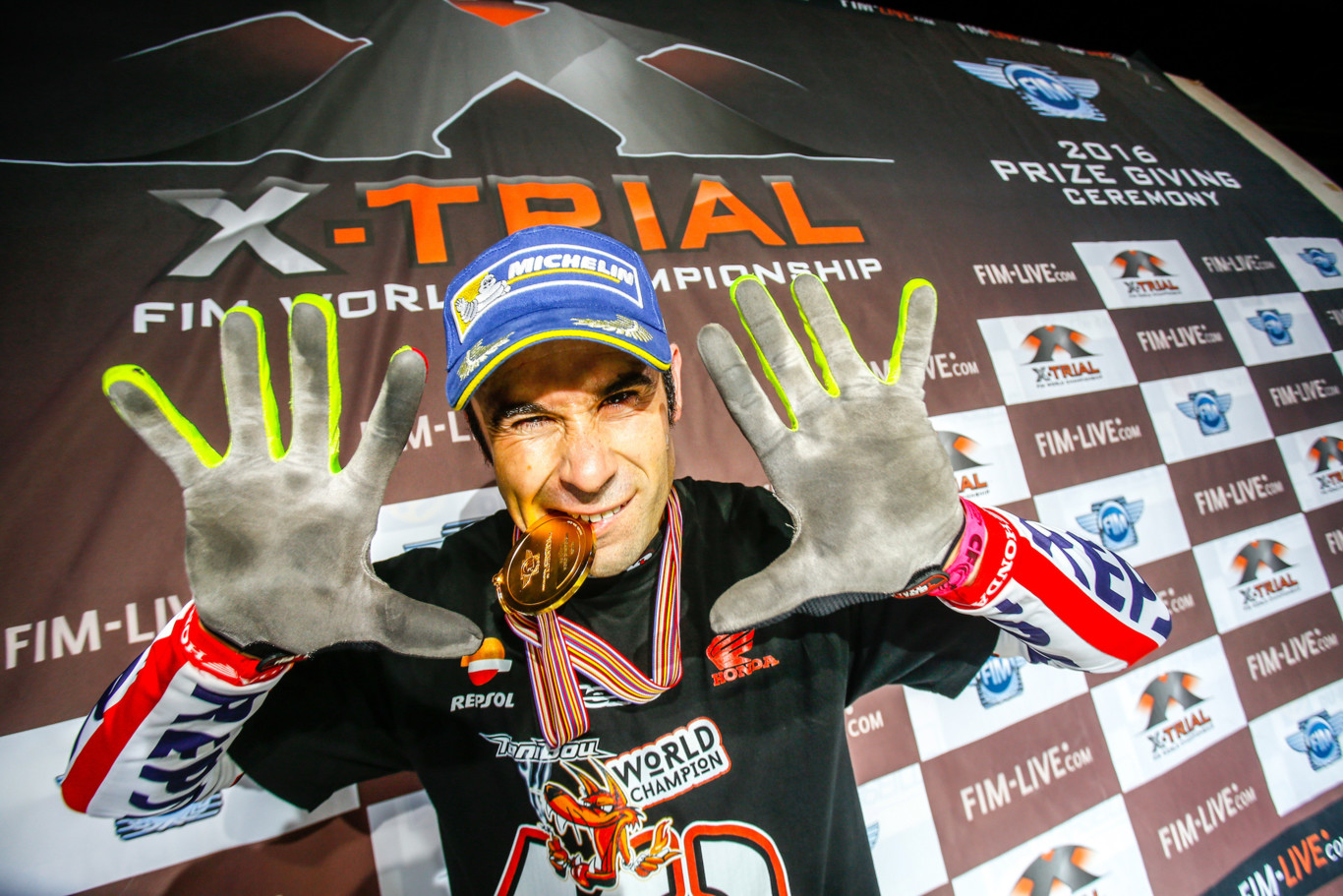 Es probablemente el mejor piloto de la especialidad que hayamos visto jamás. No tiene rival. Ha ganado absolutamente todo en los últimos años haciéndose con 19 de los 19 títulos que disputaba. Aun así, los telediarios le mencionan de pasada, si le mencionan, y los diarios deportivos siguen dedicando sus portadas a poco probables fichajes y polémicas de fin de semana. Estoy hablando del espectacular Toni Bou, quién hace sólo un par de días consiguió proclamarse campeón del mundo de trial indoor por décima vez consecutiva. Para celebrarlo, Repsol Honda ha preparado una pequeña infografía para repasar unas cifras que más quisiera cualquier deportista para si mismo.
