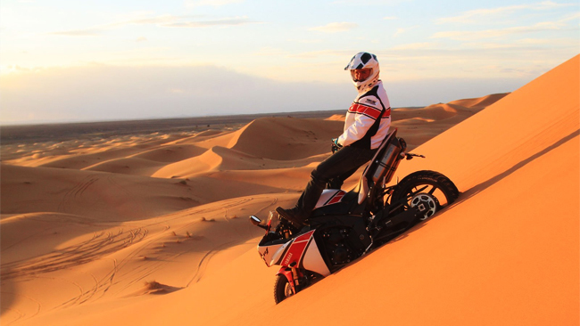 Que la prensa francesa de las dos ruedas está un poco tocada del ala ya nos lo demuestran los chicos de Moto Journal cada poco tiempo. Algo que, sin embargo, no afecta a su profesionalidad y buen hacer. En un ejercicio de entretenimiento y espectacularidad la gente de L’Integral se fueron hasta el desierto de Erg Chebbi, (Marruecos) acompañados de Stephan Peterhansel. Todo normal por el momento hasta lo que escuchas entre las dunas es un tetracilíndrico de 1000cc, concretamente el rugir de una Yamaha YZF-R1 edición 50 aniversario.