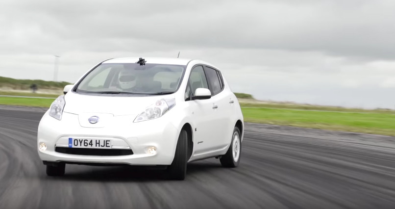 Prometo que he visto un Nissan Leaf, el compacto eléctrico de tracción delantera, haciendo drifting. Lo juro, no estoy bajo los efectos de ningún alucinógeno. Era un Nissan Leaf completamente de lado.