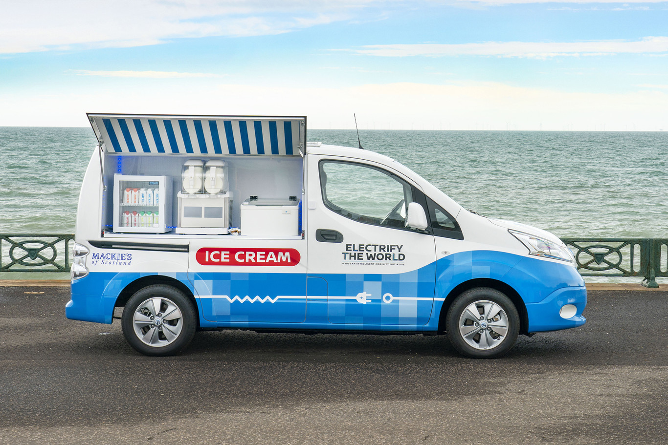 Según Nissan, históricamente las furgonetas o camiones de helados han estado siempre dotados de motores de combustión, habitualmente diésel, y debido a que las cámaras frigoríficas y el equipamiento debía mantenerse siempre encendido, el motor normalmente también continuaba en marcha incluso durante los momentos de venta con el vehículo estacionado.