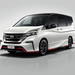 La Nissan Serena adopta los elementos característicos de las creaciones de NISMO, empezando por el faldón delantero con entradas de aire específicas y luces diurnas LED, un perfil inferior en color rojo que recorre toda la carrocería, la parrilla delantera con el logo NISMO y muchas otras cosas.