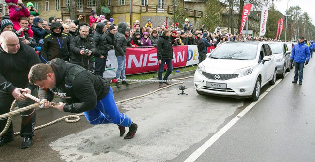 No me imagino la cara de la mujer que respondió al teléfono en las oficinas de Nissan en Lituania cuando nuestro protagonista, Zydrunas Savickas, llamó para pedir una flota de Nissan Note, concretamente doce unidades. "¿Para qué los quiere?", debió preguntar la amable señorita, a lo que el bueno de Zydrunas respondería: "Para qué va a ser, para tirar de ellos".