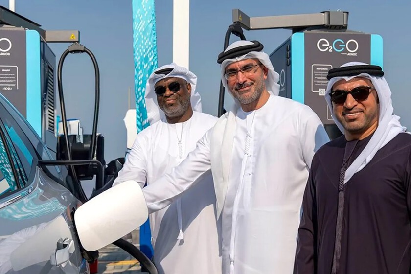 Este enorme centro de carga ultrarrápida para vehículos eléctricos, bautizado como EV Megahub, ha sido construido por el minorista petrolero ADNOC Distribution (el cual cuenta con casi 370 estaciones de carga para vehículos eléctricos instaladas bajo la marca E2GO).
